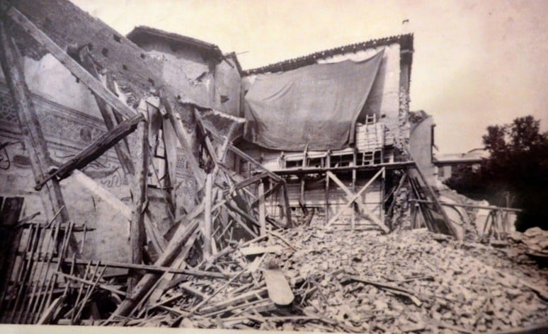 Despite the intentions of Allied pilots to spare, if possible, Milan’s irreplaceable art treasures, a bomb fell within 80 feet of the Convent of Santa Maria della Gracie. The shock wave collapsed the roof, the cloister, and most of the walls.