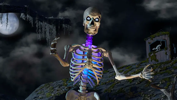 For those who simply must outdo their neighbors, now there’s Ultra Skelly, who is app-controlled and fully animated. This latest and greatest skeleton is equipped with a glowing interior, Bluetooth-enabled voice effects, and eyes that can track the movements of five-year-olds who want nothing more than a Snickers bars. Not that any of those children will end up in therapy 25 years from now.