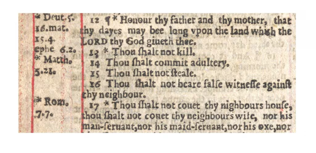 This is a snapshot of Exodus chapter 20 as it appears in a 1631 London publication of the King James Bible.