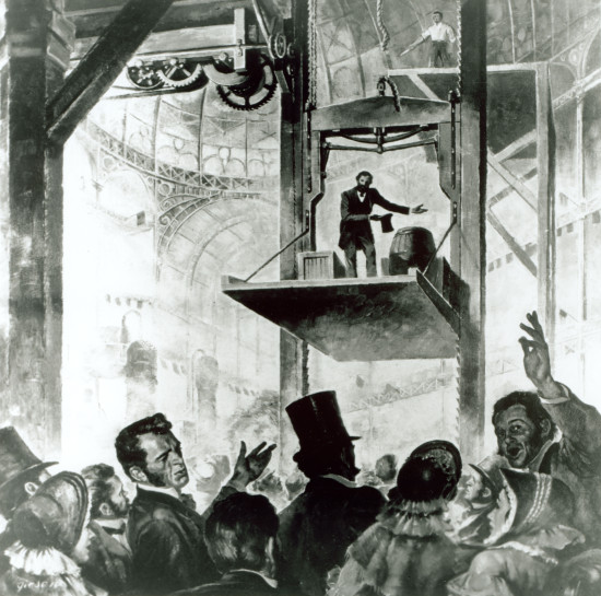 Looking down on the crowd at the Crystal Palace Exposition in New York in 1853, Otis gave the signal to chop the only rope that held him suspended on a platform high above the masses.